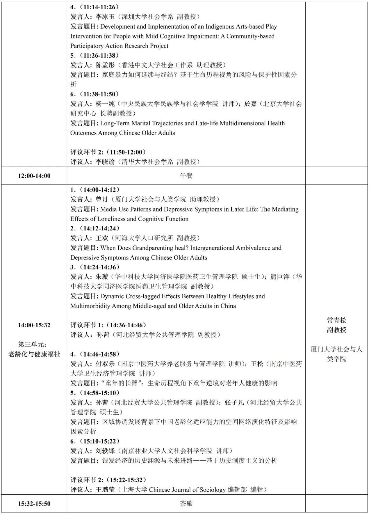 论坛负责人: 杨菊华教授(中央民族大学民族学与社会学学院);郭未教授(南京大学社会学院);常青松副教授(厦门大学社会与人类学院)