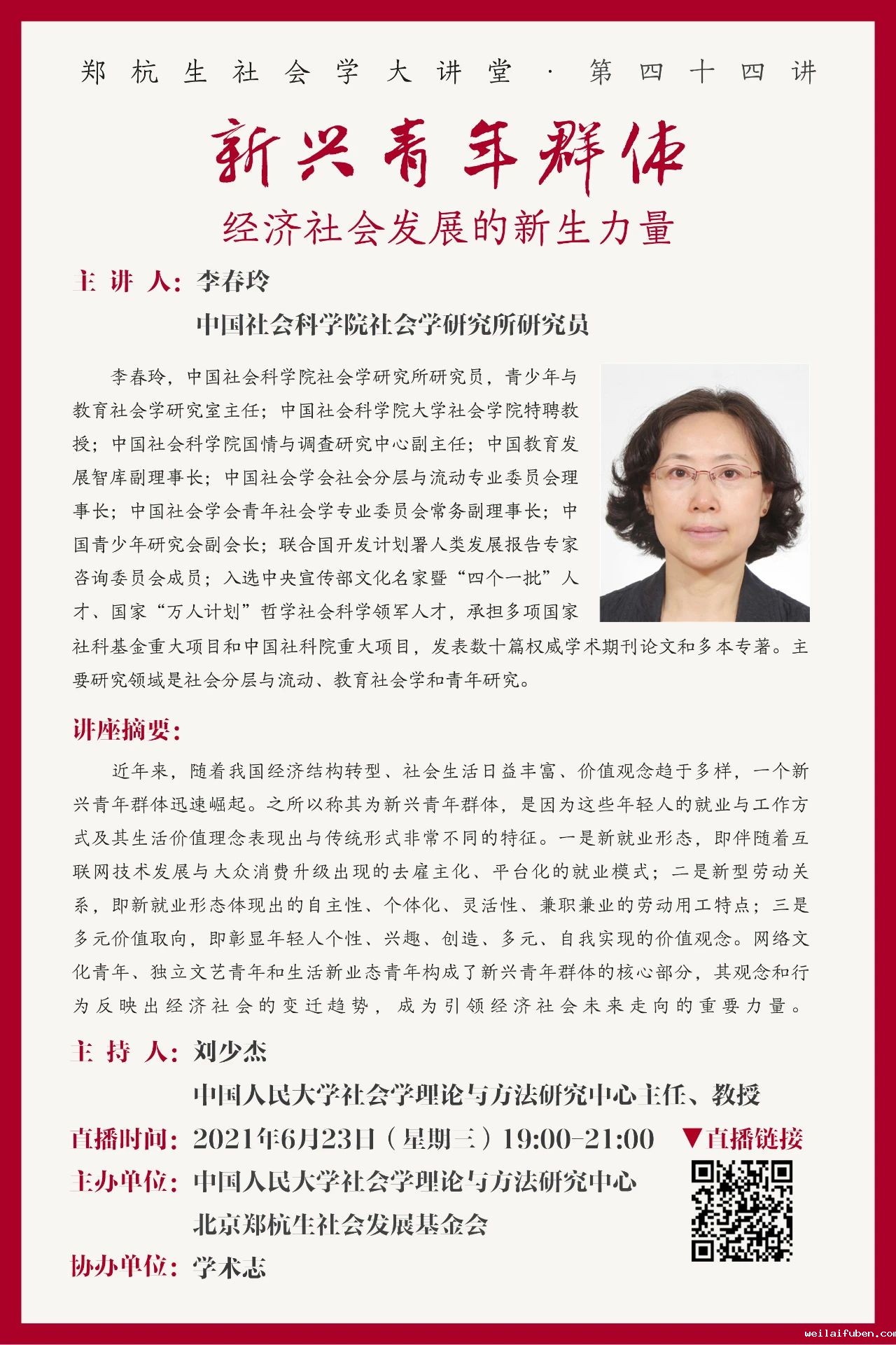 【郑杭生社会学大讲堂·第四十四讲】李春玲 | 新兴青年群体:经济社会发展的新生力量