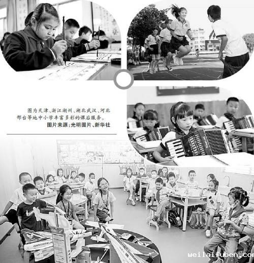 在课后服务的内容上,86.4%的学校组织完成课后作业,79.6%的学校安排学生自主阅读,68.6%的学校开展德育、体育、美育、劳动教育,60.2%的学校组织科普活动,58.2%的学校组织社团活动。调查中也有14.4%家长反映学校在课后服务中存在讲授新课或集体补课的现象。