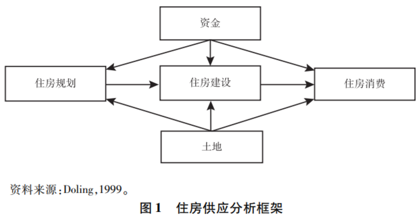 文章采用多林的住房供应分析框架作为分析工具(Doling,1999)。这一框架重点关注住房供应的三个宏观维度,是对特定政治系统下住房模式关键特征的宏观考察,而非对住房政策过程的全面描述。其优点在于可以使研究者在把握住房模式关键维度的同时避免意识形态和政策多变等细节的干扰。