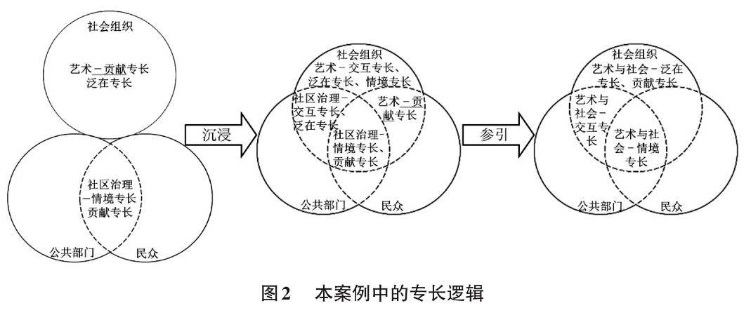 以往专长研究侧重于交互专长,对于参引的研究不多;在本案例中,参引行为融合了多元专长,作用于边界消解。各个组织内部的个人通过交互专长的沟通交流作用,理解各自组织的贡献专长,再通过参引行为,用对方熟悉的语言进行表述,进而作用于对方所在的贡献专长领域。万象中心通过社区治理的语言对艺术品进行分析和阐述,使其艺术贡献专长得到发挥,随着不同领域专长的融合,再通过艺术实践发挥自身的社区治理贡献专长,最终形成艺术与社会的领域。