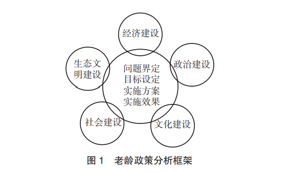 “五位一体”总体布局在党的十八大报告中正式提出,是指从经济建设、政治建设、文化建设、社会建设和生态文明建设五个方面全面推进中国特色社会主义事业发展。老龄政策作为中国特色社会主义事业的一部分,将其纳入统筹推进“五位一体”总体布局对推进国家治理能力现代化和探索中国特色积极应对人口老龄化道路具有重大意义。党的十八大以来,在以习近平同志为核心的党中央坚强领导下,我国老龄工作把增进老年人福祉、促进老年人的全面发展作为出发点和落脚点,结合人口老龄化发展进程与经济社会发展情况出台了一系列老龄政策。尽管已有学者对新时代我国老龄政策的发展历程进行了概括,但在“五位一体”总体布局视角下审视老龄政策的研究尚显不足。